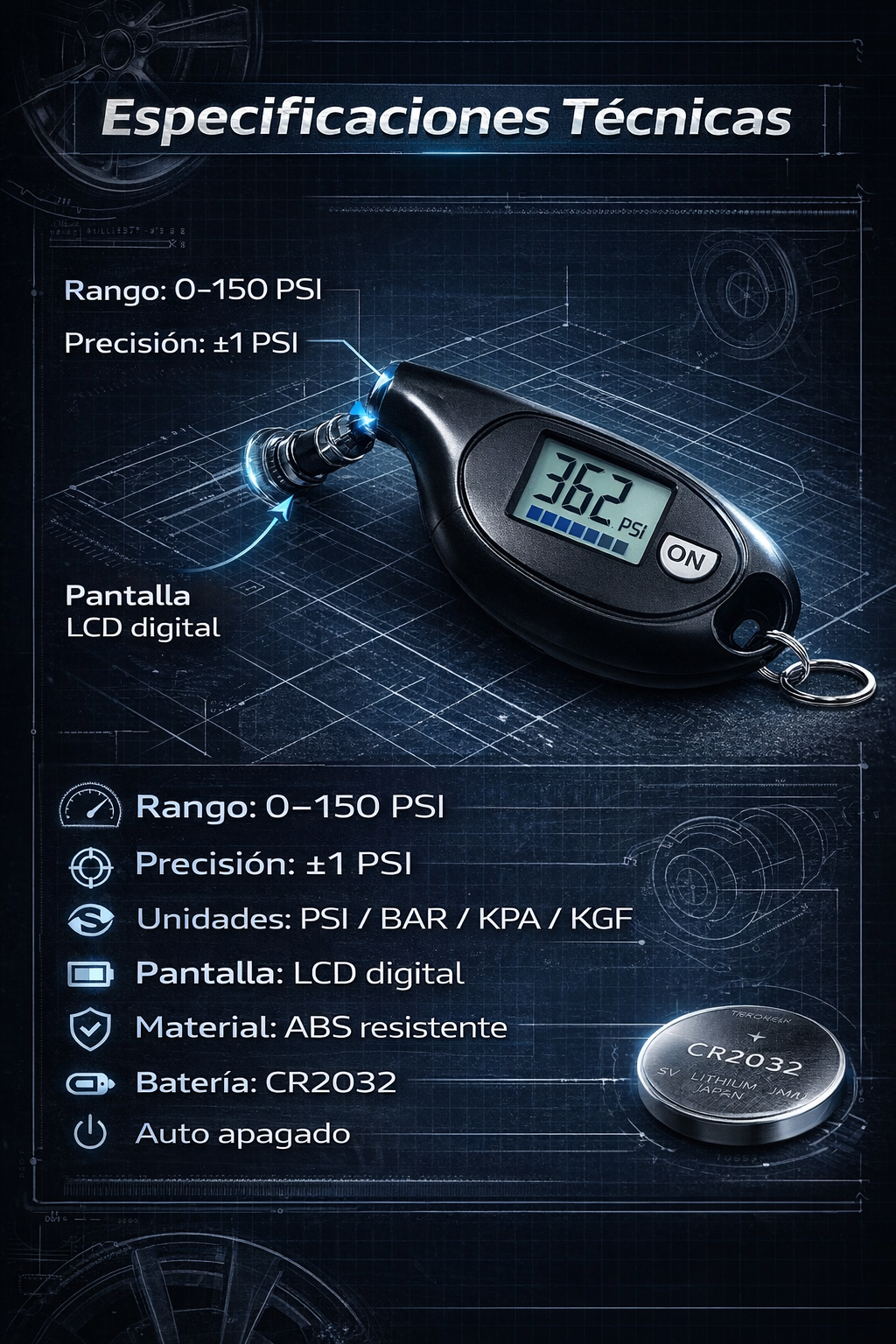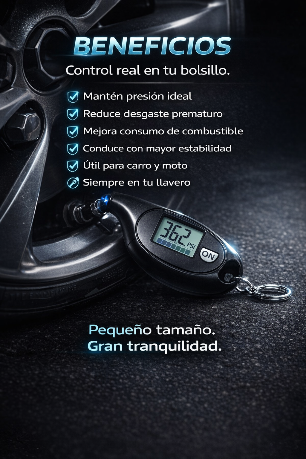TireSense™ Mini – Medidor Digital de Presión de Llantas