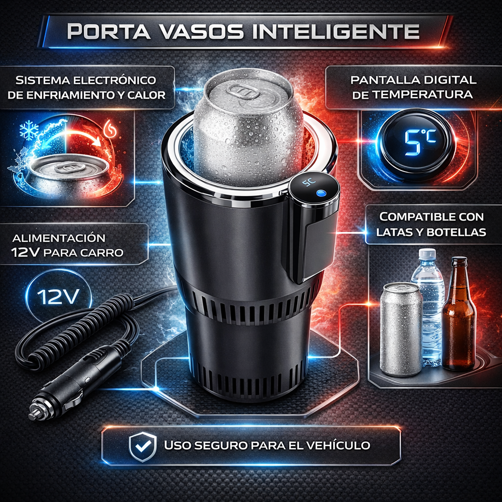 Porta Vasos Inteligente para Carro – Enfría y Calienta